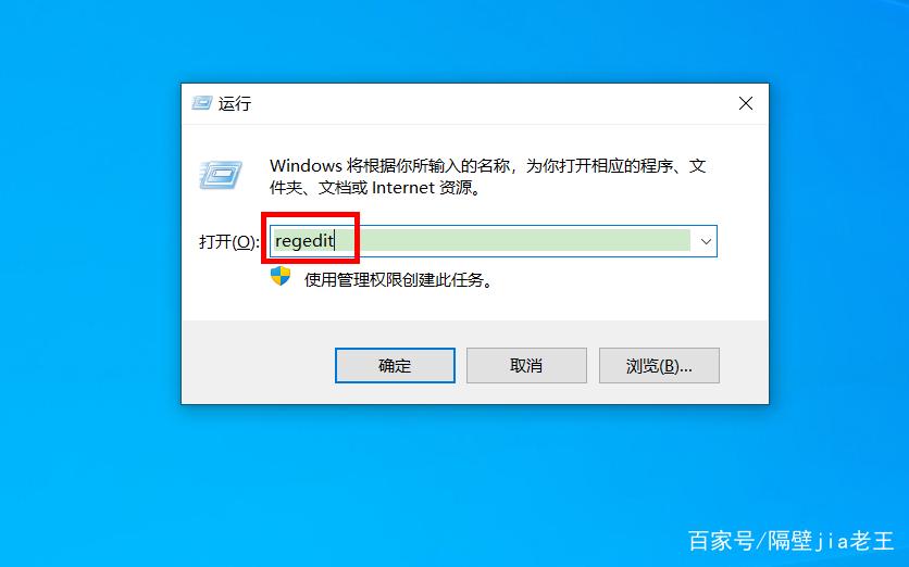 1、按下Win+R,打开运行窗口,输入regedit,打开注册表。如下图所示: