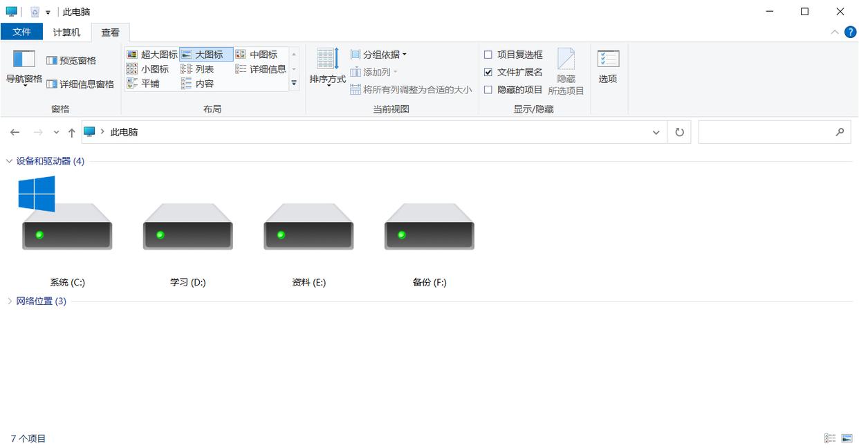 3、将上面7个文件夹相应代码全部删除后,再打开电脑资源管理器,会发现这7个文件夹已经全部消失了。