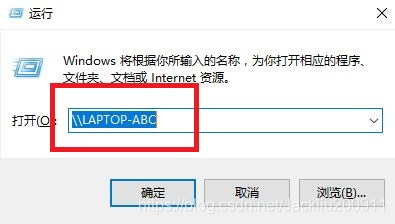 11、打开另一台计算机,Win+R,输入\\LAPTOP-ABC命令,确定回车
